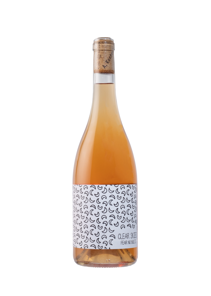 “To Clear Skies Fear No Bolts” is a blend of 60% Malagousia, 25% Xinomavro, and 15% Assyrtiko — each vinified separately through a combination of white and rosé winemaking techniques.